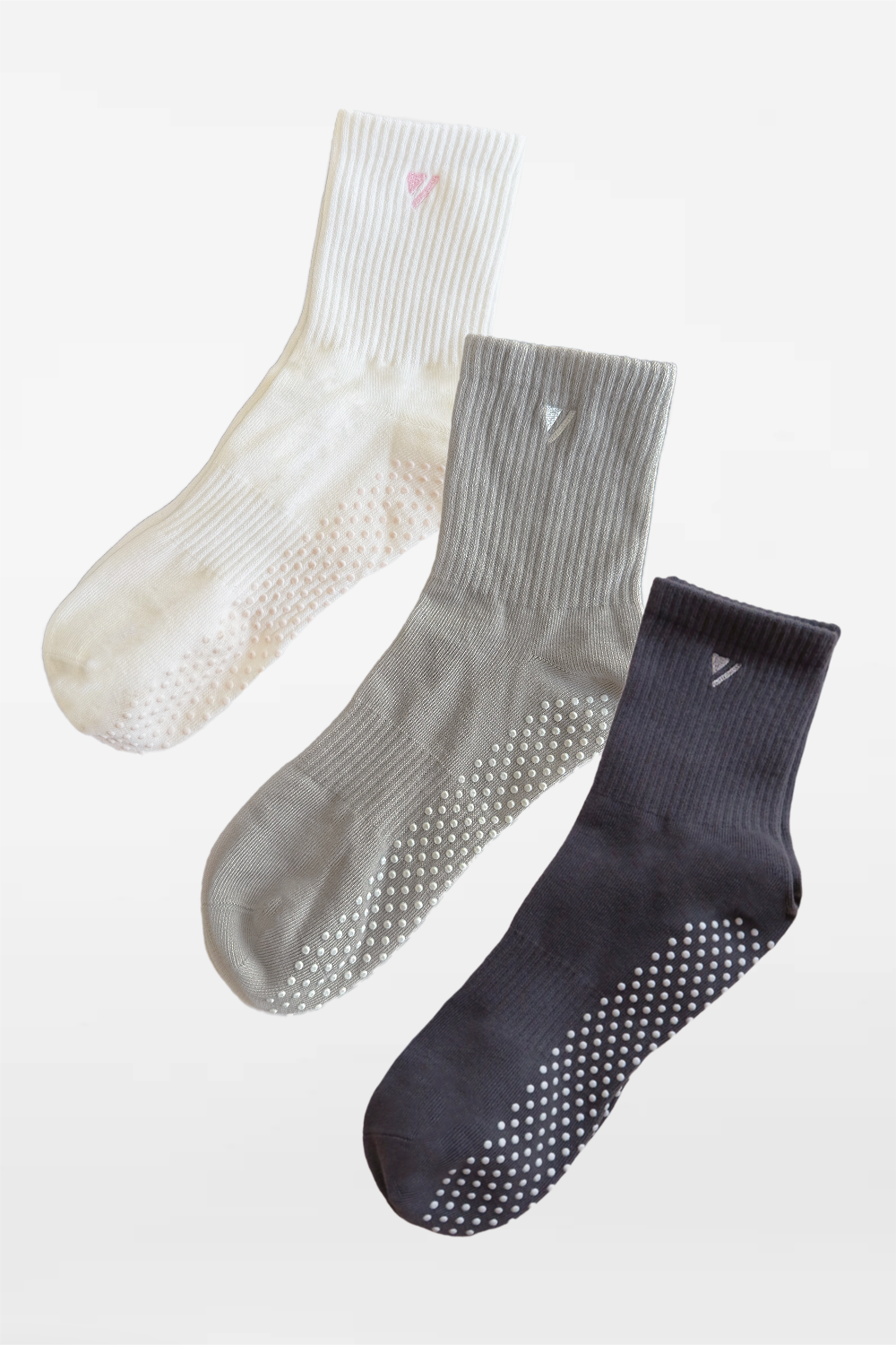 Studio-ready and reformer-approved. A soft cotton blend with silicone-dotted sole grips keeps you stable through every move.